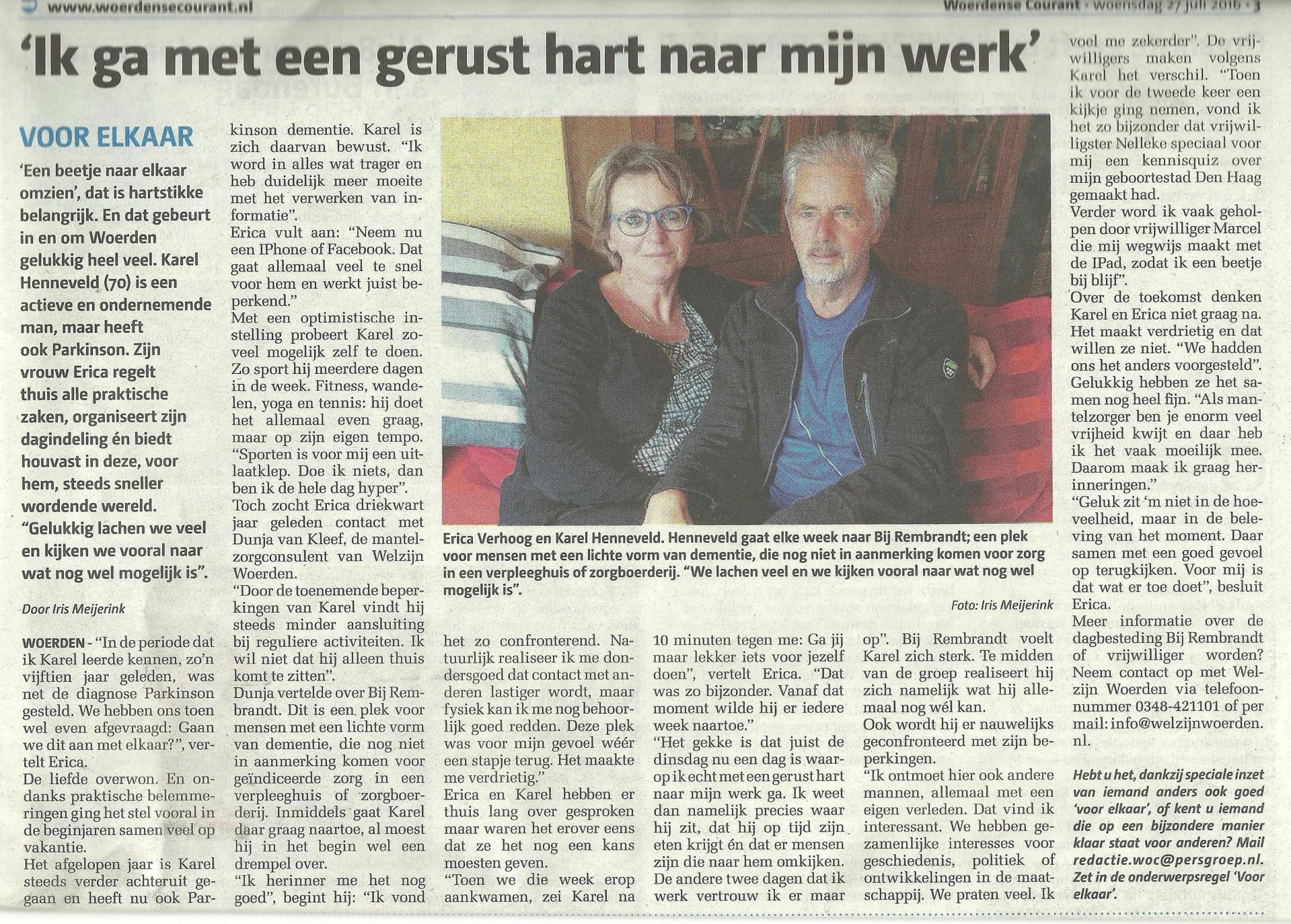 Een prachtig en herkenbaar interview van onze vrijwilliger Erica Verhoog en haar partner Karel Henneveld in de